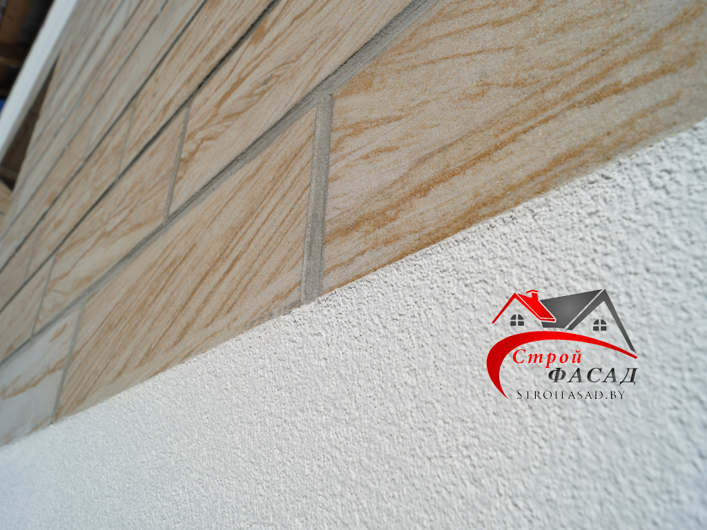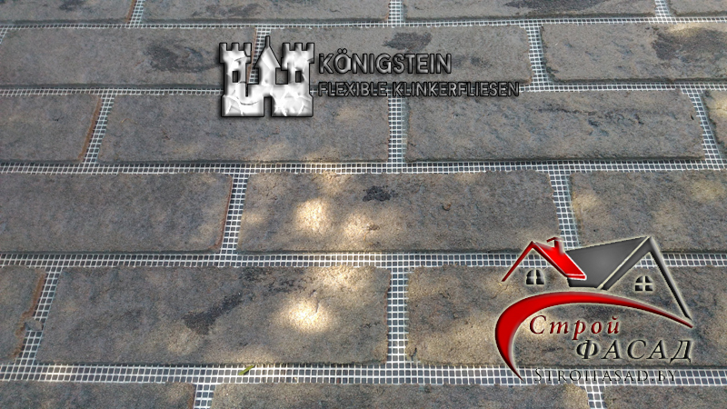- Для монтажа плитки используется Гибкий клинкер площадью 0,5 м2 нанесённый на фасадную щелочистойкую стекло-сетку.